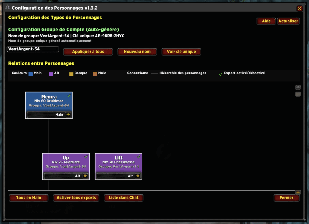 Cet addon permet aux joueurs d’exporter les informations de leur personnage — faction, métiers, compétences, etc. — dans un format encodé et non modifiable, garantissant la sécurité et l’intégrité des données.