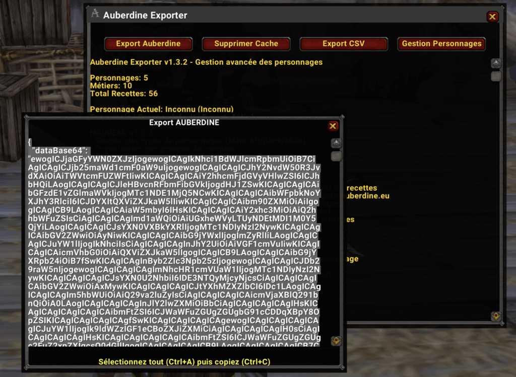 1. Le joueur copie le bloc de texte généré par l’addon.