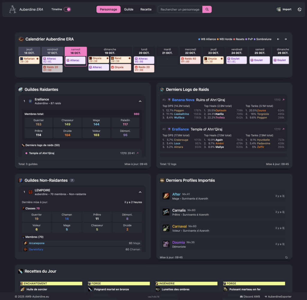 Le projet auberdine.eu est né d’une idée simple : donner vie à la communauté francophone du serveur Auberdine (WoW Classic Era) à travers une plateforme moderne, dynamique et connectée.