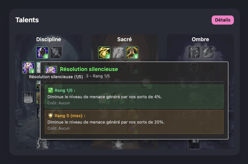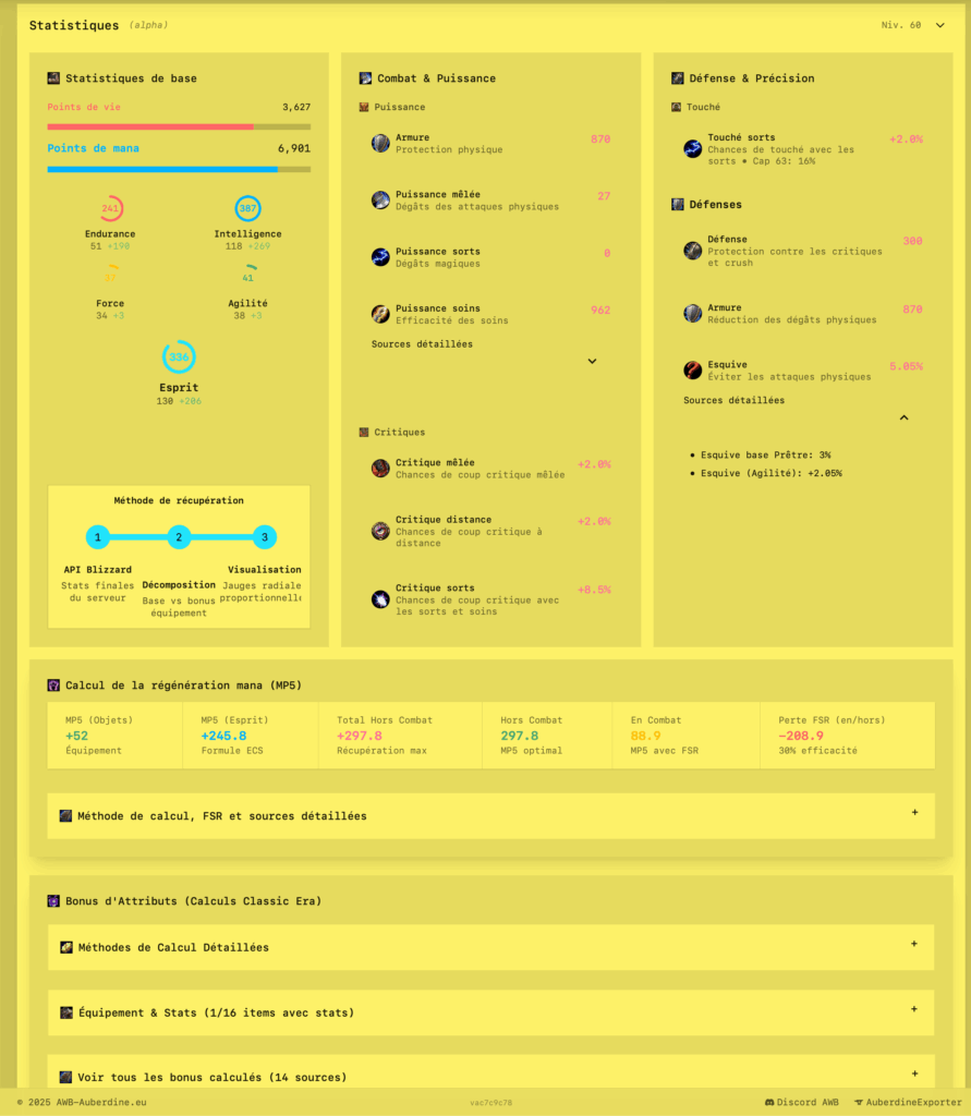 • Des tooltips dynamiques (objets, métiers, compétences) reproduisant fidèlement le rendu en jeu, tout en restant légers et responsives.