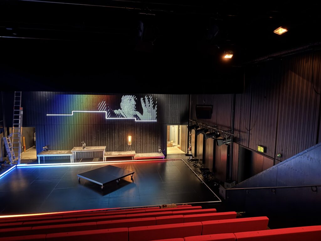 Premier projet scénique intégrant l’usage du laser depuis ma validation de compétence, le respect des contraintes en réflexions et en sécurité dans une petite salle était intéressant à gérer. L’usage des triangles LED a aussi été contraignant pour ne pas supplanter le jeu et le déroulé en scène.