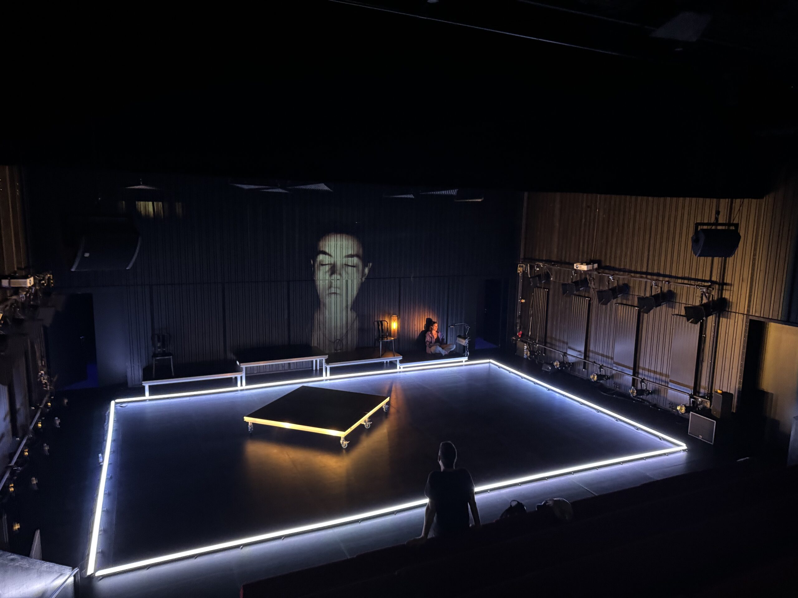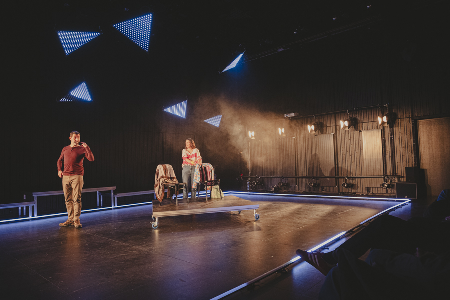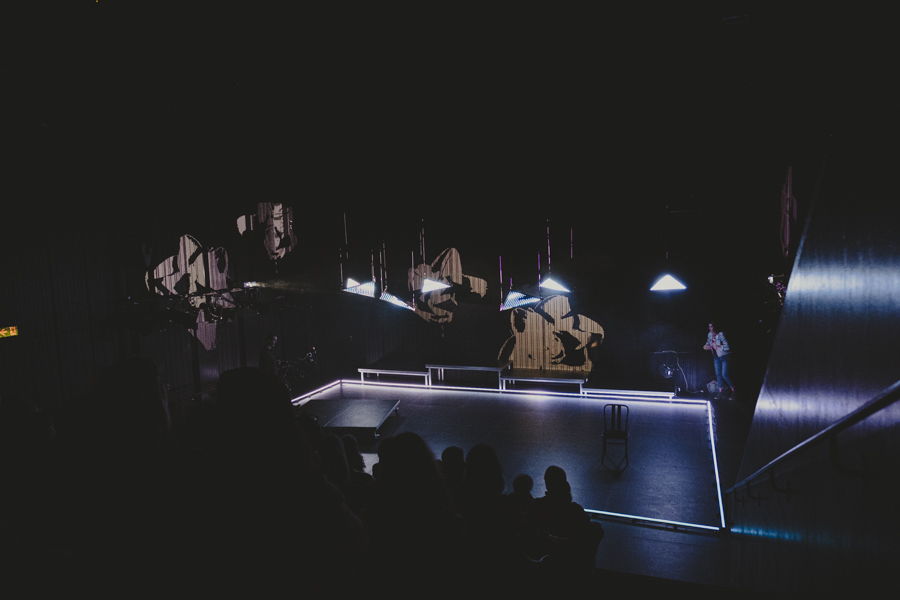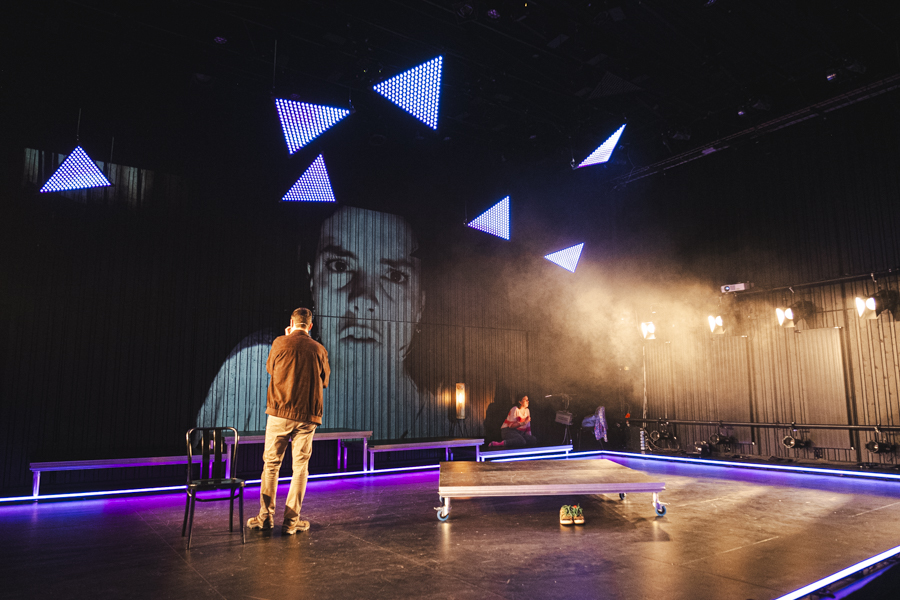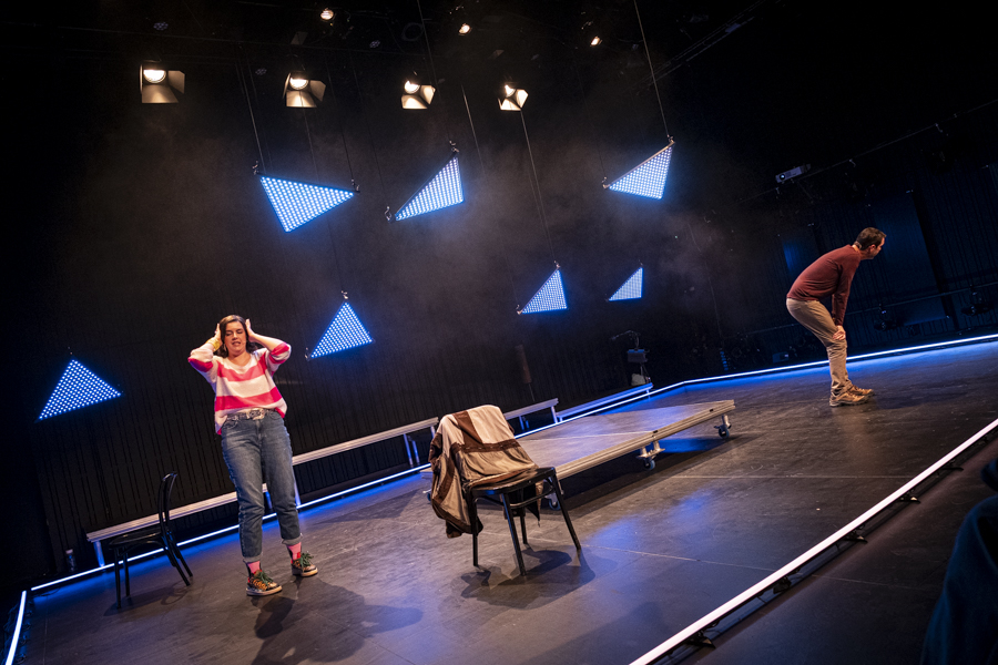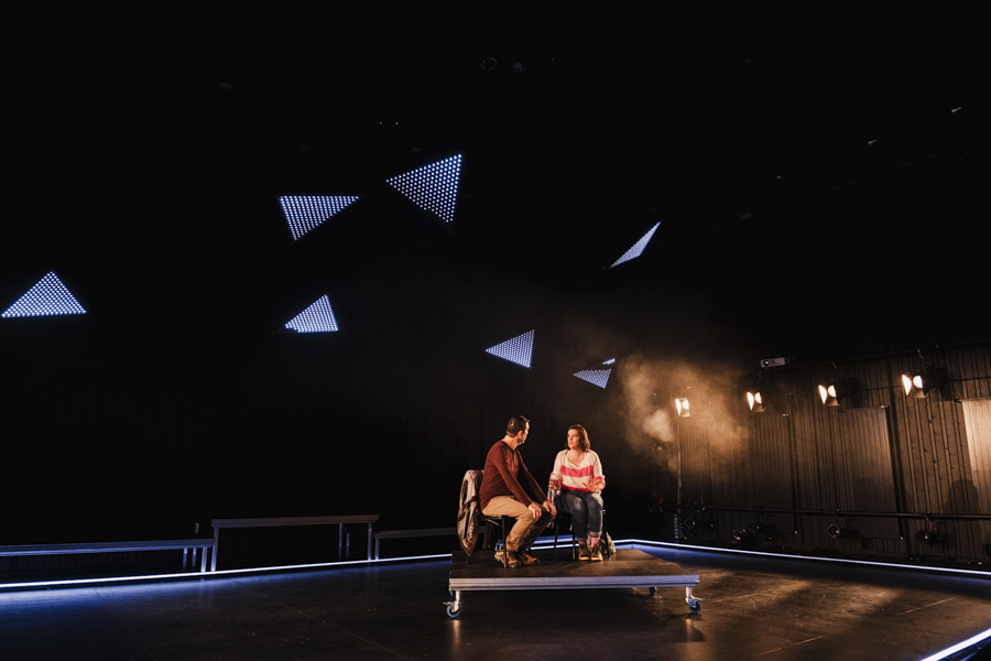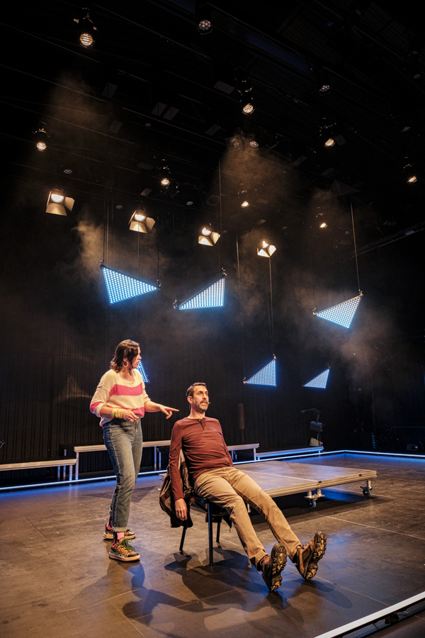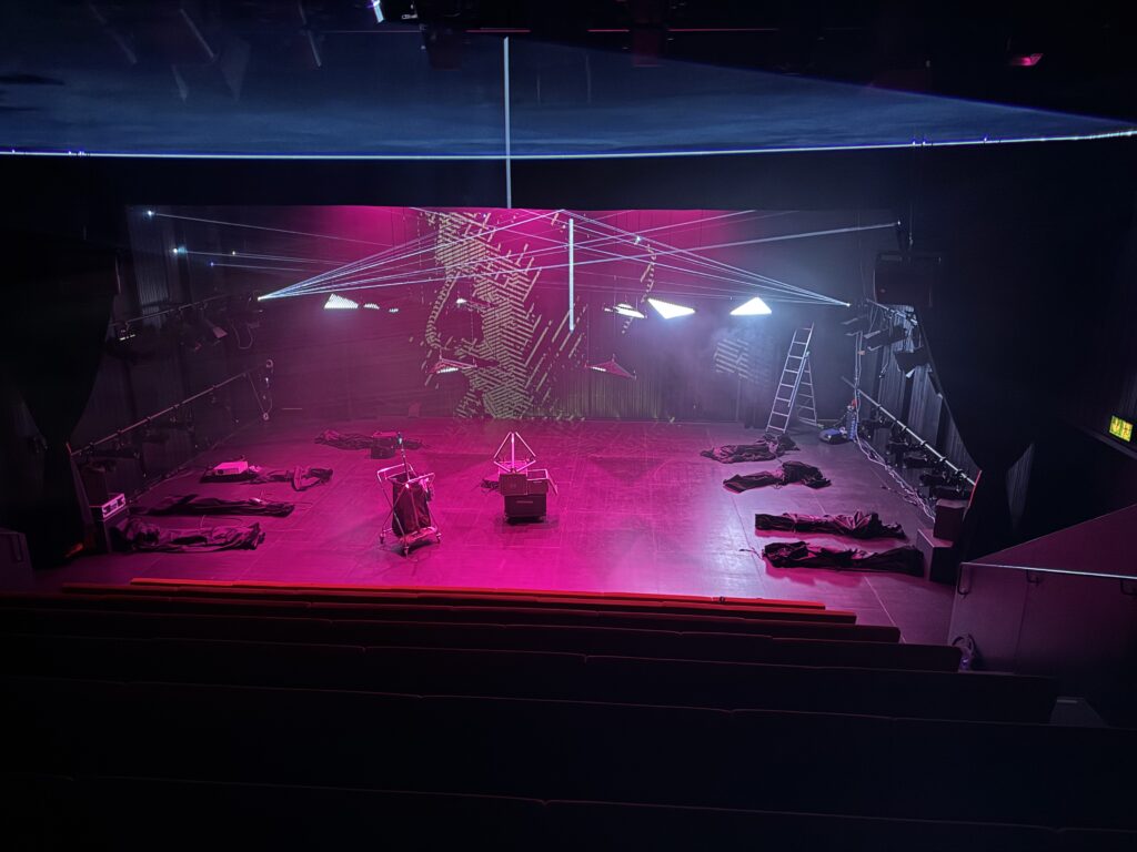 Premier projet scénique intégrant l’usage du laser depuis ma validation de compétence, le respect des contraintes en réflexions et en sécurité dans une petite salle était intéressant à gérer. L’usage des triangles LED a aussi été contraignant pour ne pas supplanter le jeu et le déroulé en scène.
