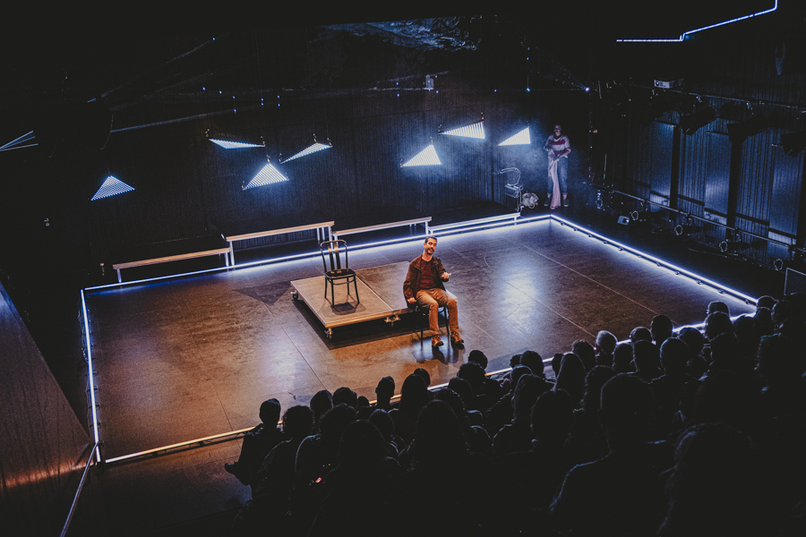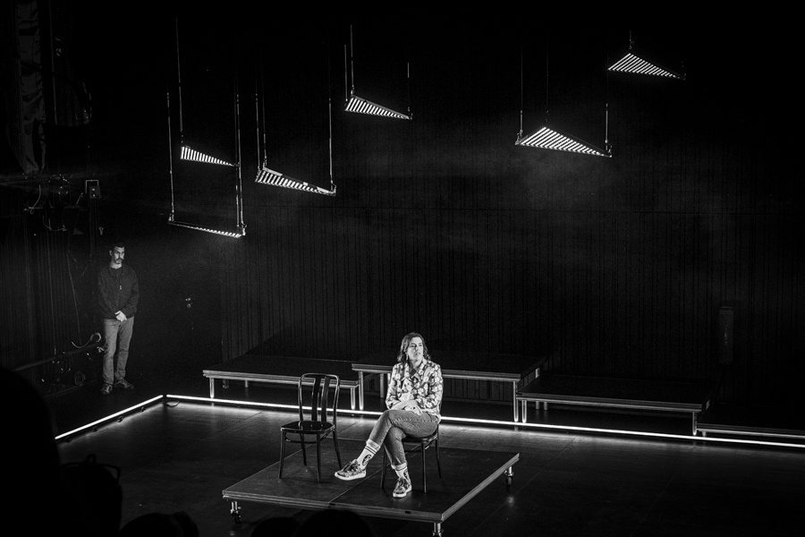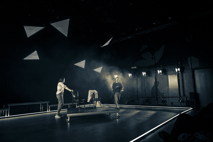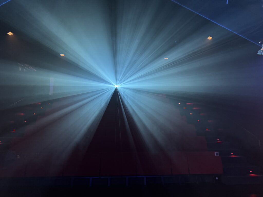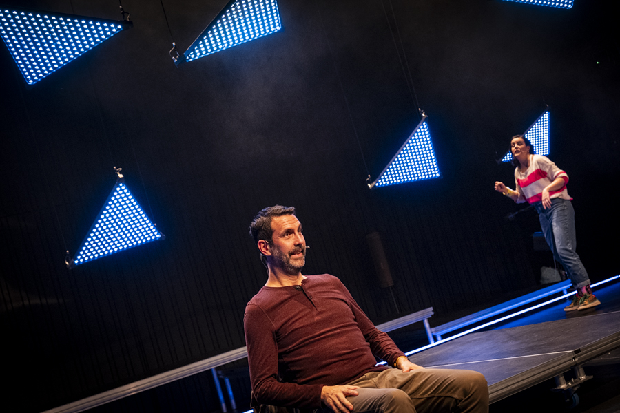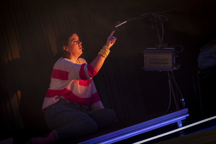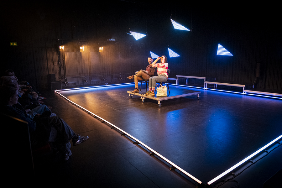 Premier projet scénique intégrant l’usage du laser depuis ma validation de compétence, le respect des contraintes en réflexions et en sécurité dans une petite salle était intéressant à gérer. L’usage des triangles LED a aussi été contraignant pour ne pas supplanter le jeu et le déroulé en scène.