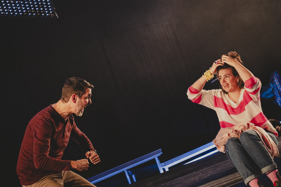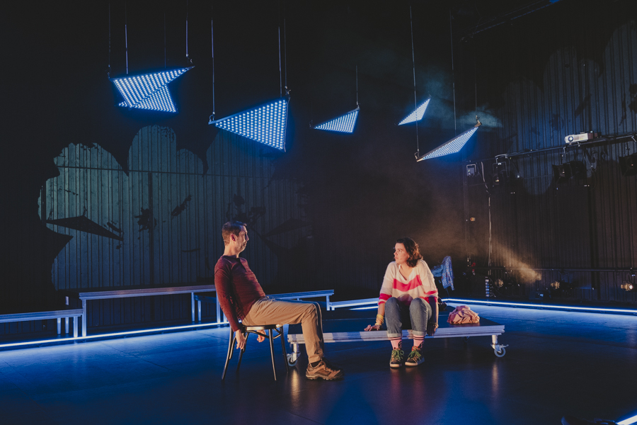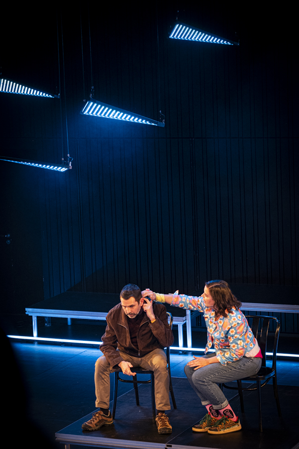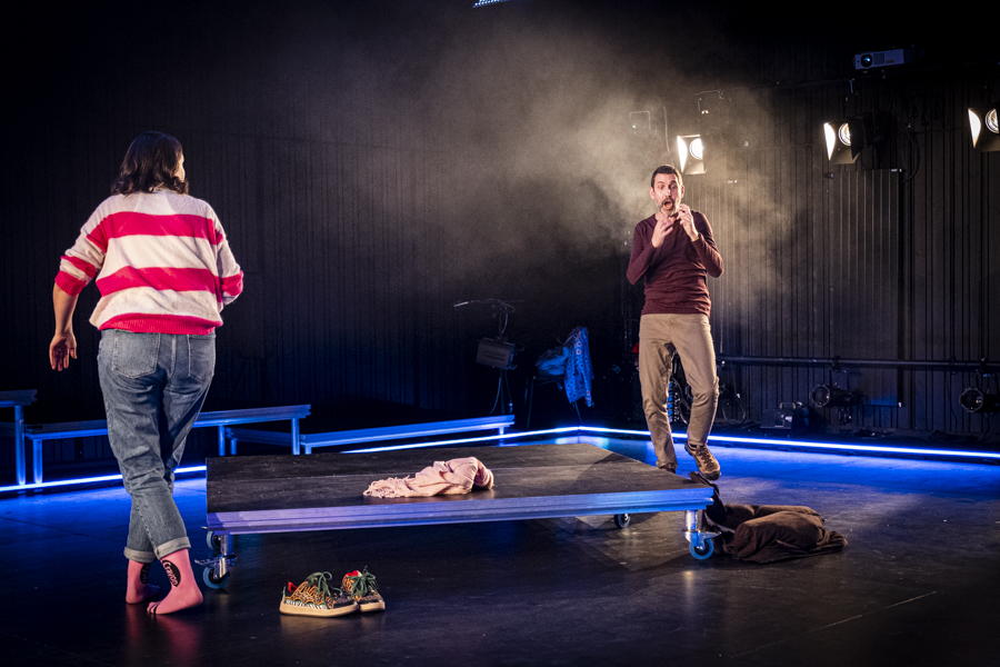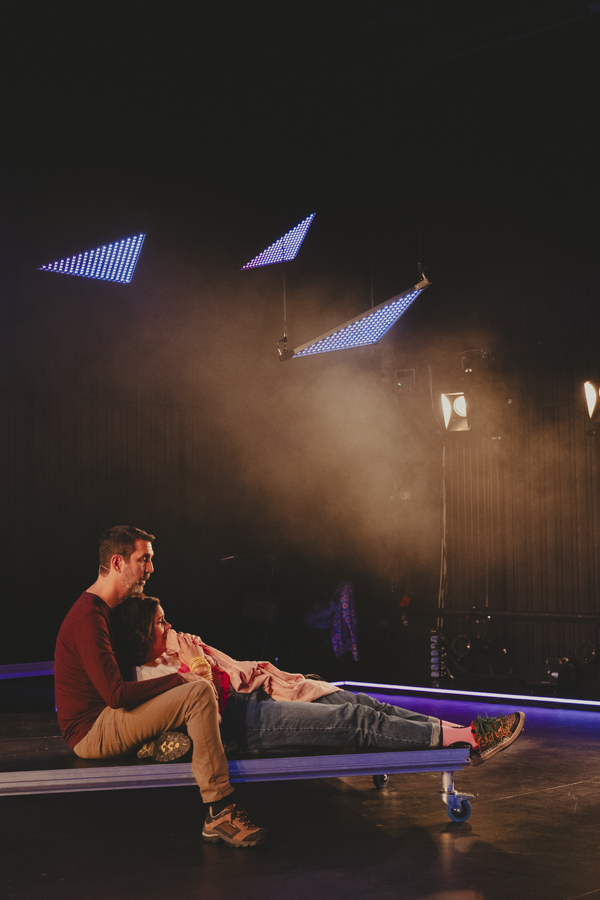 Interprété par Odile Cantero et Christian Baumann, mis en scène, improvisation sonore, co-régie lumière par Tony Romaniello. Costumes par Sarah Bruh. Espace scénique, vidéo, winches, lasers et éclairage par moi-même.